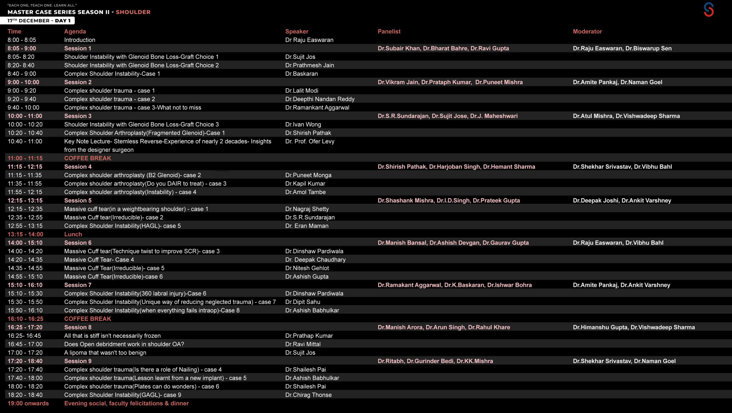 This season is focused on understanding the complexities in the shoulder joint. It covers all the 3 areas of shoulder surgeries- Trauma, Arthroscopy and Joint Replacement.
